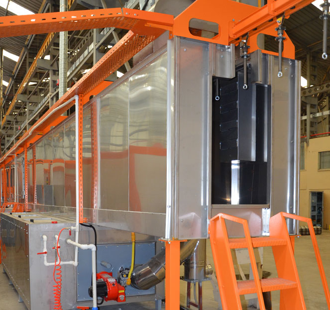 Sprey tüneli uzunluğunu, kullanılan kimyasal proses ve konveyör hızı belirlemektedir. Sprey Püskürtme mühendislik departmanımız, boyanacak parçaya göre en uygun kimyasal prosesi kullanarak en verimli hattın tasarımını size sunar.