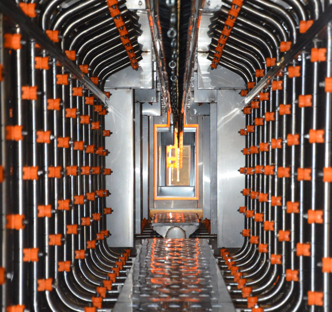 Sprey tüneli uzunluğunu, kullanılan kimyasal proses ve konveyör hızı belirlemektedir. Sprey Püskürtme mühendislik departmanımız, boyanacak parçaya göre en uygun kimyasal prosesi kullanarak en verimli hattın tasarımını size sunar.